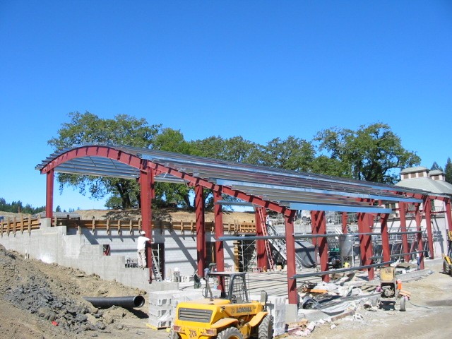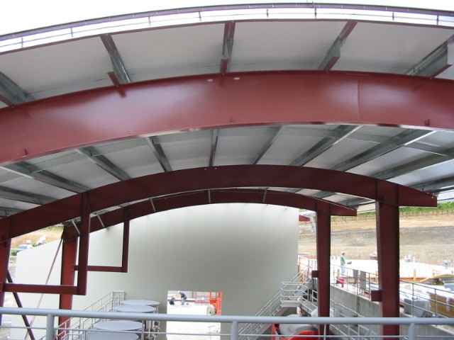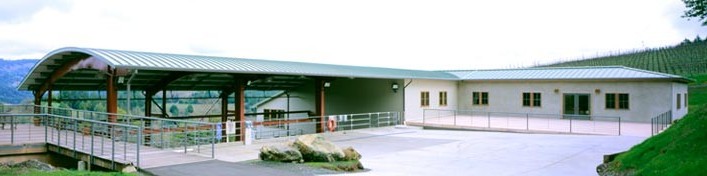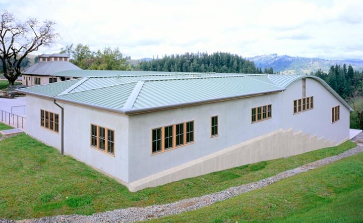 The designers of Flowers Winery used a barrel roof with field curved roof panels. Rigid frames were manufactured to the radius of the roof. In order to be prepared for crush, the winery portion of this project was completed in just two months.