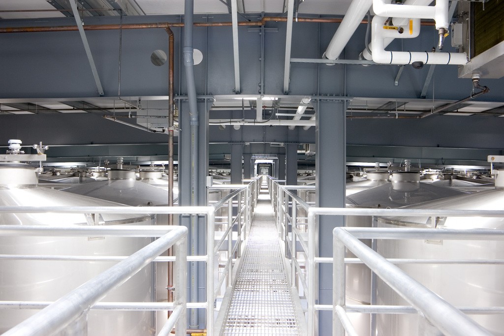 For maximize energy efficiency, this wine tank storage building has R20 insulated wall panels and a standing seam roof over R26 rigid insulation. Custom awnings over doors and windows as well as a 20' wide canopy beautifully protect against the elements.